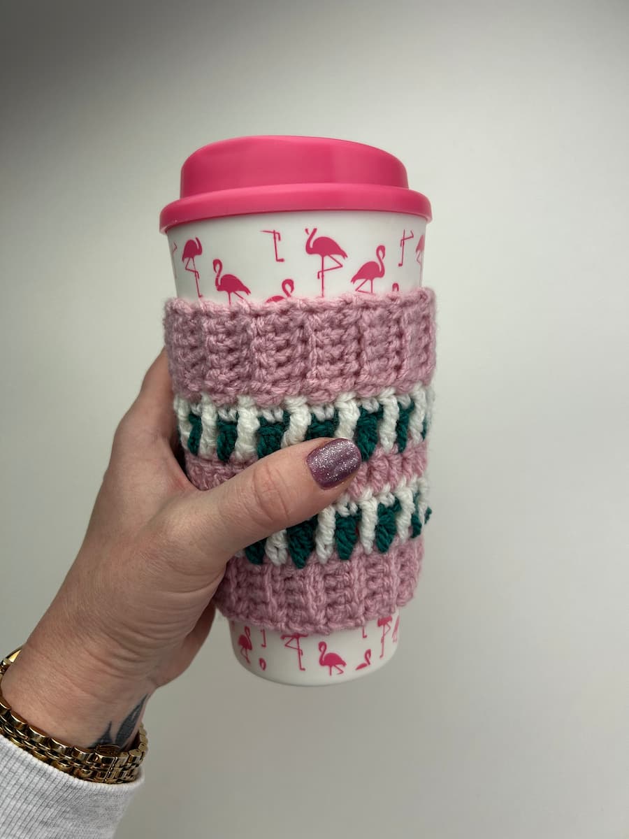 FREE Interlocking Crochet Coffee Cup Cozy Pattern & Video